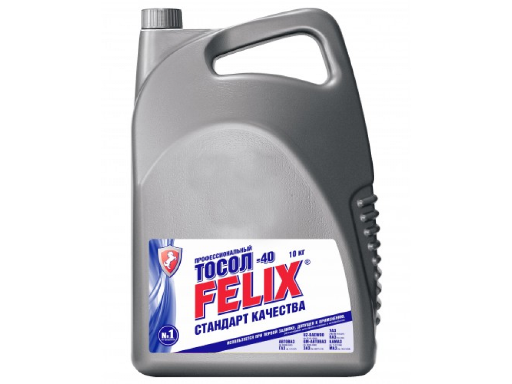 Профессиональный тосол FELIX – 45 – это современная охлаждающая жидкость, соответствующая требованиям международных стандартов. Обеспечивает 100% защиту двигателя и деталей системы охлаждения от коррозии, перегрева, замерзания до -45°С - специальная формула присадок обеспечивает мгновенную защиту деталей системы охлаждения во всем диапазоне рабочих температур и давлений. По сравнению с обычными тосолами обладает увеличенным ресурсом эксплуатации – 120 000 км без замены (Протокол № 32532/074-04 АвтоВАЗа). Единственный российский тосол, успешно прошедший полный цикл испытаний на российских автозаводах, и допущенный к первой конвейерной заливке. Не содержит амины и нитриты, образующие вредные для здоровья нитрозоамины и другие канцерогенные соединения. ПРЕИМУЩЕСТВА: Неагрессивен к резиновым изделиям и металлам, в том числе алюминию Имеет низкую испаряемость и пониженное пенообразование Сохраняет стабильность при высоких и низких температурах Препятствует образованию накипи Соответствует международным стандартам ASTM D 3306, SAE J 1034 Обладает превосходными смазывающими свойствами Изготовлен из высококачественного этиленгликоля Допуски и спецификации: ASTM D 3306, SAE J 1034