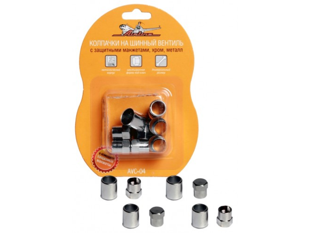 Изделие помогает обеспечить сохранность автомобильных шин, защищая их от попадания мелкой грязи и жидкостей, а также предотвращая травление воздуха. Данная модель колпачков имеет защитные манжеты из металла, что создает дополнительный барьер для различного рода повреждений. Колпачки имеют металлический корпус и расцветку «хром».