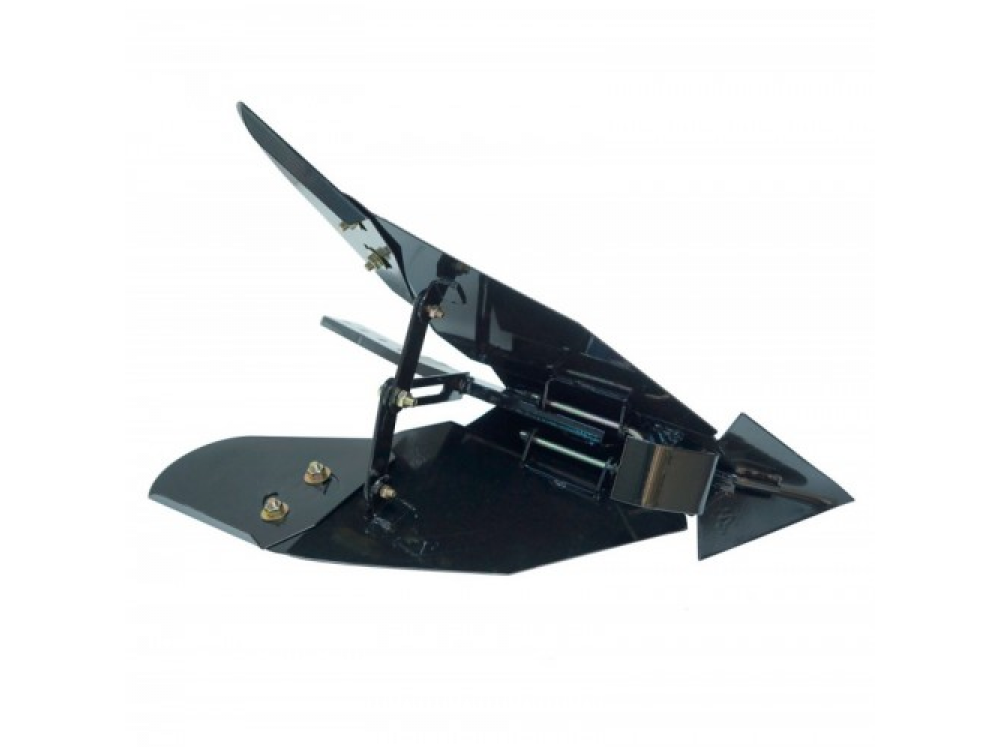 Регулируемый окучник и плуг крепятся вместо сошника (опорная пластина с отверстиями, идёт в комплекте с мотоблоком).