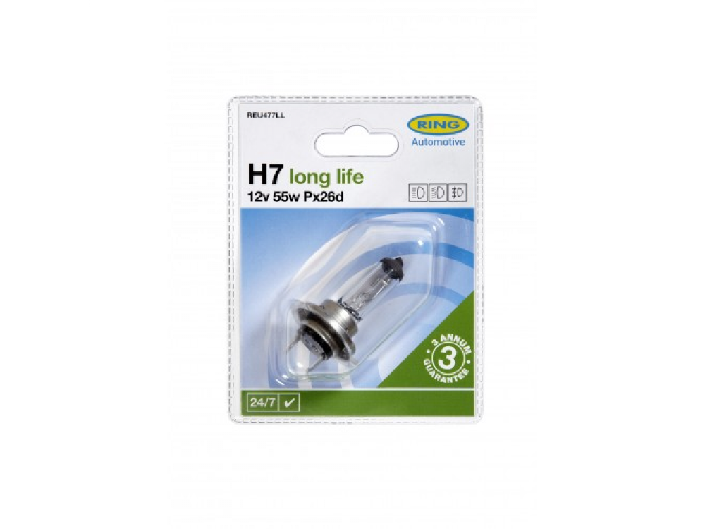 Автолампа с гарантией 2 года в пластиковой упаковке (по 1 шт): 12 вольт, мощность 55W, цоколь H7 (PX26D)