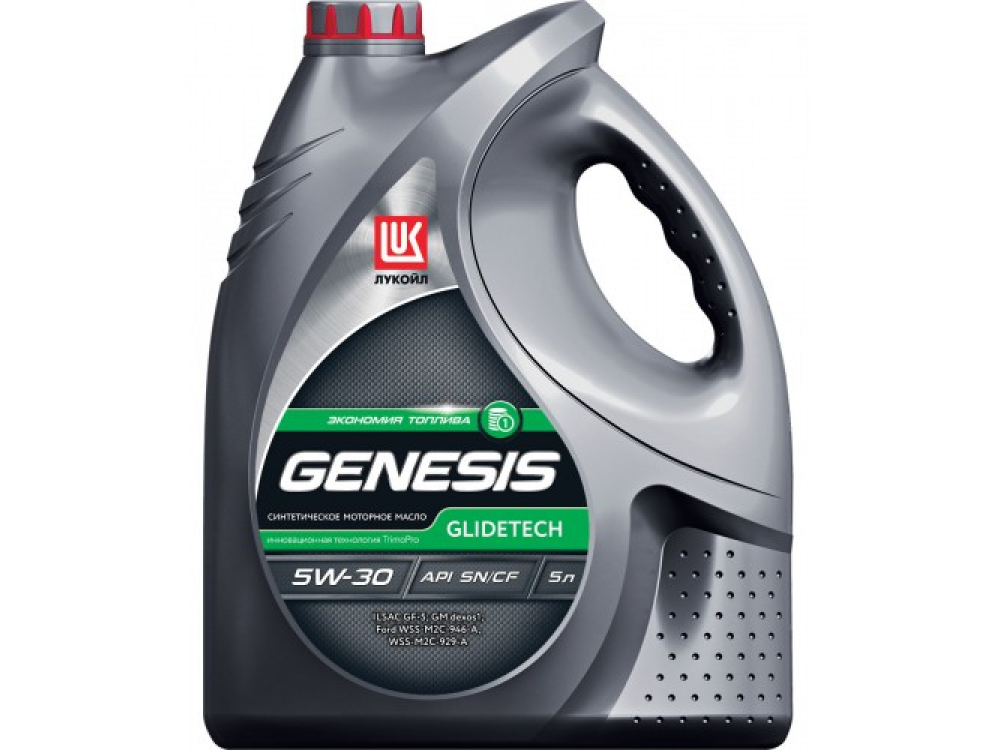 ЛУКОЙЛ GENESIS GLIDETECH 5W-30 – всесезонное полностью синтетическое моторное масло последнего поколения, разработано с учетом самых последних требований стандартов по экономии топлива. Масло предназначено для всесезонного применения в современных высокофорсированных двигателях легковых и легких грузовых автомобилей, требующих использования масел категории FE (Fuel Economy), в том числе оборудованных турбонаддувом. Полностью отвечает требованиям спецификаций Ford WSS-M2C-929-A и ILSAC GF-5. ЛУКОЙЛ GENESIS GLIDETECH 5W-30 разработано на основе высококачественных синтетических базовых компонентов с применением передовых технологий присадок (TrimoPro®)