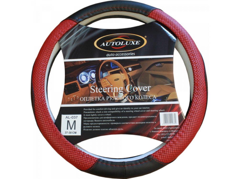 Оплетка д/руля AL-037 (красн.) M