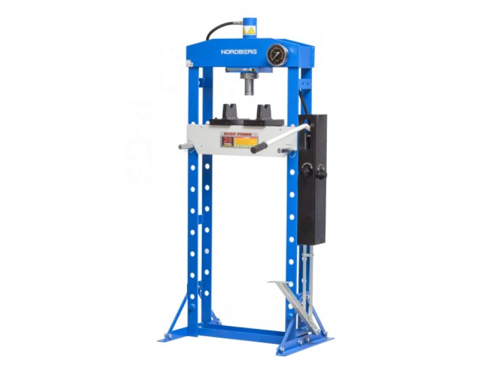 Напольный гидравлический пресс с ножным приводом NORDBERG N3620F Описание: Надежная сварная конструкция рамы Горизонтальное смещение гидравлического цилиндра Регулируемый стол Две пластины-трапеции Гидравлический цилиндр 20 тонн. Гидравлический насос с ножным приводом. Автоматический возврат поршня. Предохранительный клапан для защиты от перегрузок. Глицеринозаполненый манометр 90 мм для контроля силы нагрузки. Ножное управление (педаль) Поставляется в деревянном боксе.
