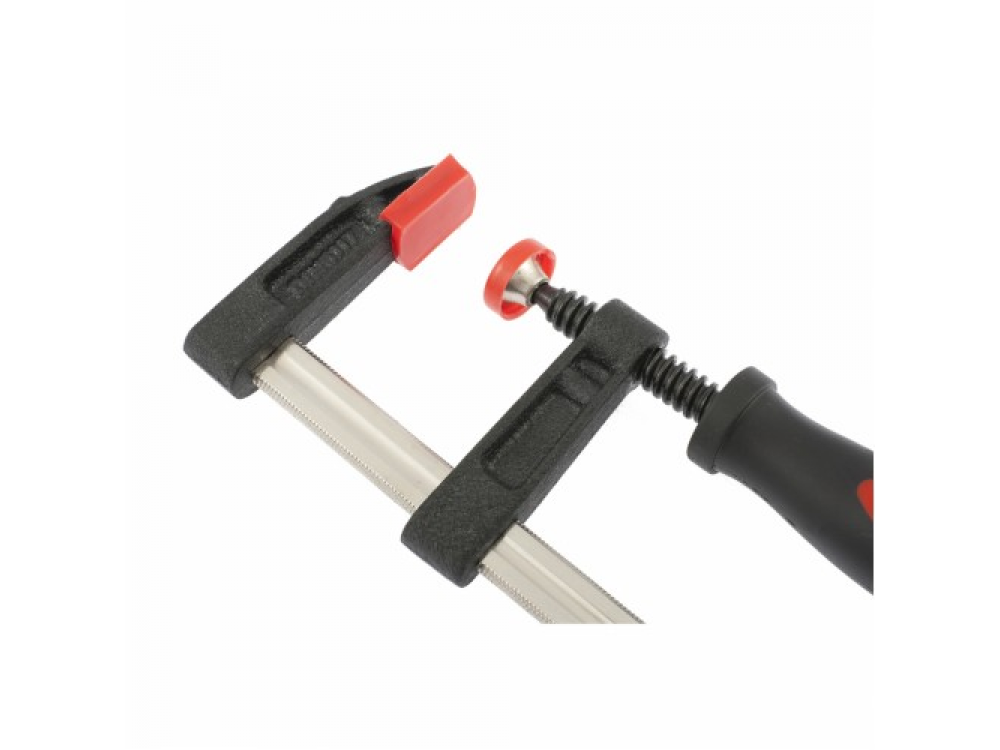 Один из кронштейнов установлен на направляющей жестко и не подвижно.Другой перемещается для регулировки захвата и оснащен винтовым зажимом.Губки кронштейнов снабжены пластиковыми накладками для защиты обрабатываемых предметов от повреждения при их обработке.Винтовой зажим на подвижном кронштейне оснащен эргономичной двухкомпонентной обрезиненной рукояткой обеспечивающий комфорт в работе.