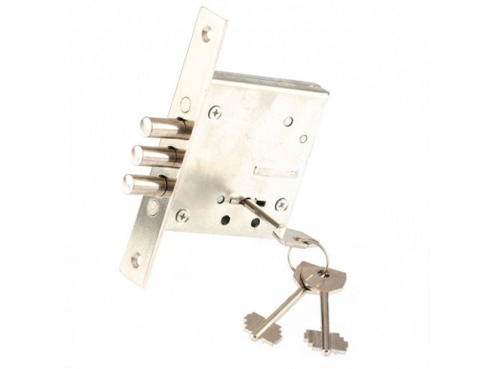 Предназначен для использования во внутренних дверях жилых и подсобных помещений. Обладает высокой механической прочностью. Прост и удобен в эксплуатации. Корпус и планки оцинкованы. Отпирается ключом снаружи и изнутри. Замок имеет 1-й класс секретности. В комплекте 3 ключа.